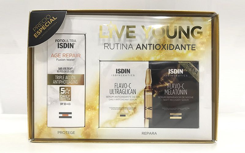 Combinació d'ampolles Flavo-C Ultraglican,que aporten lluminositat, i Flavo-C Melatonin, amb propietats antioxidants i restauradores. Inclou el Fotoultra Age Repair, protector solar amb triple acció anti-fotoenvelliment.